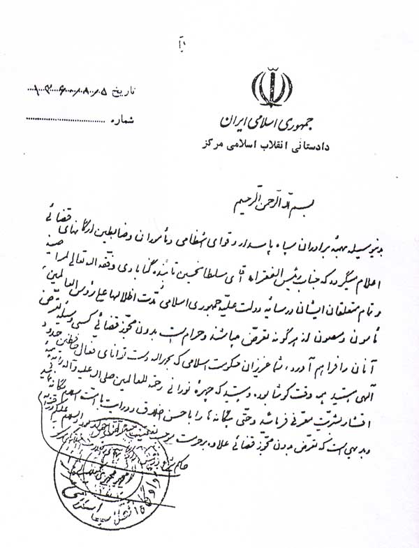 نامه امام موجي را که «جناح سياسي» در زمينه دفاع از