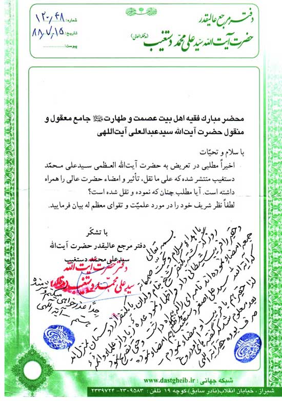 آيتالله سيد علياصغر دستغيب مدظله هم امضا نموده، لذا حقير هم با