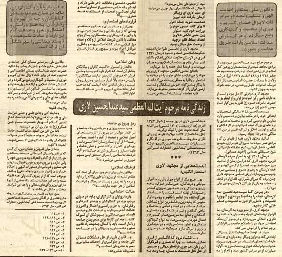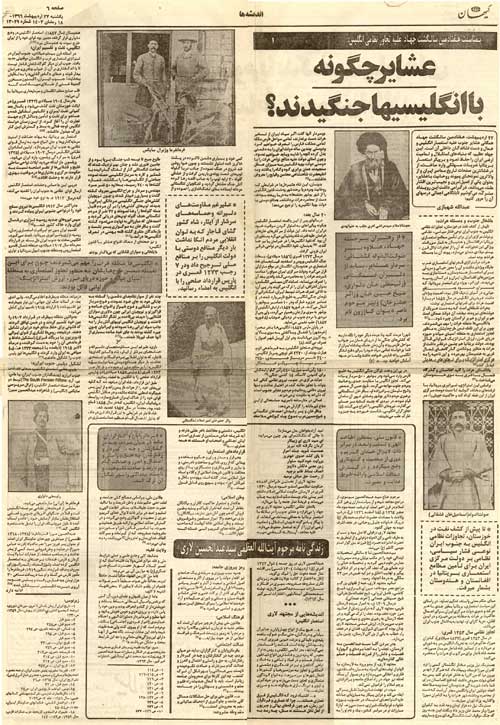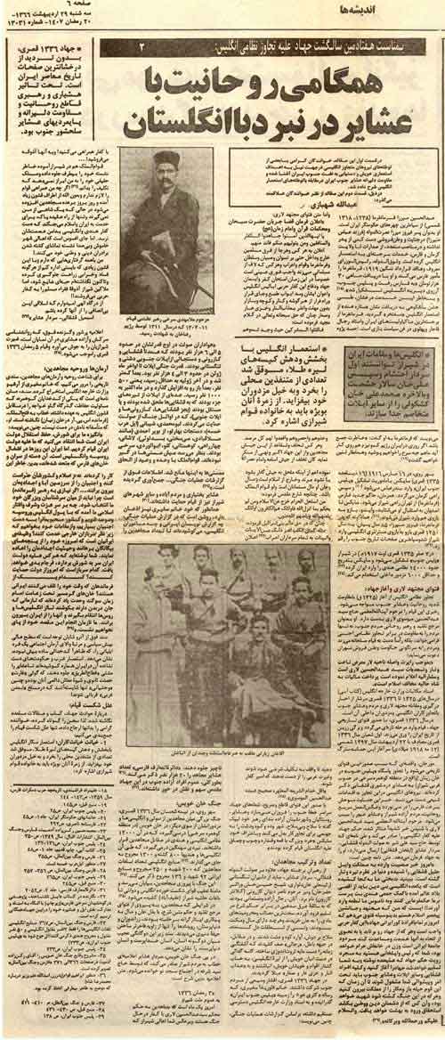 م. مردم جنوب، به فتواي مجتهد لاري، عليه استعمار بريتانيا مقالهاي نوشتم