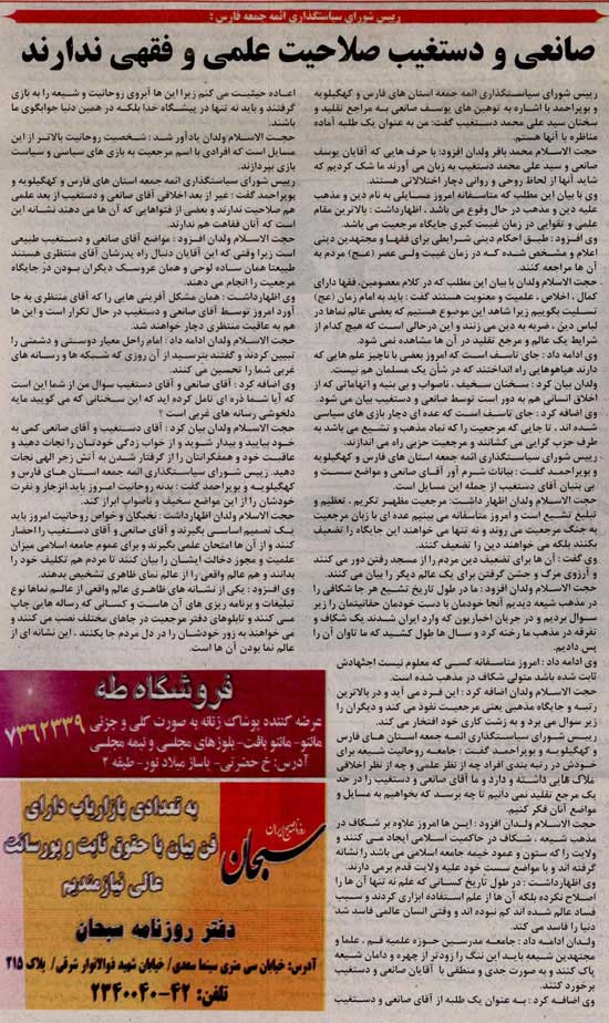 بويراحمد شد. ولدان گفت: «شايد صانعي و دستغيب دچار اختلال روحي و رواني