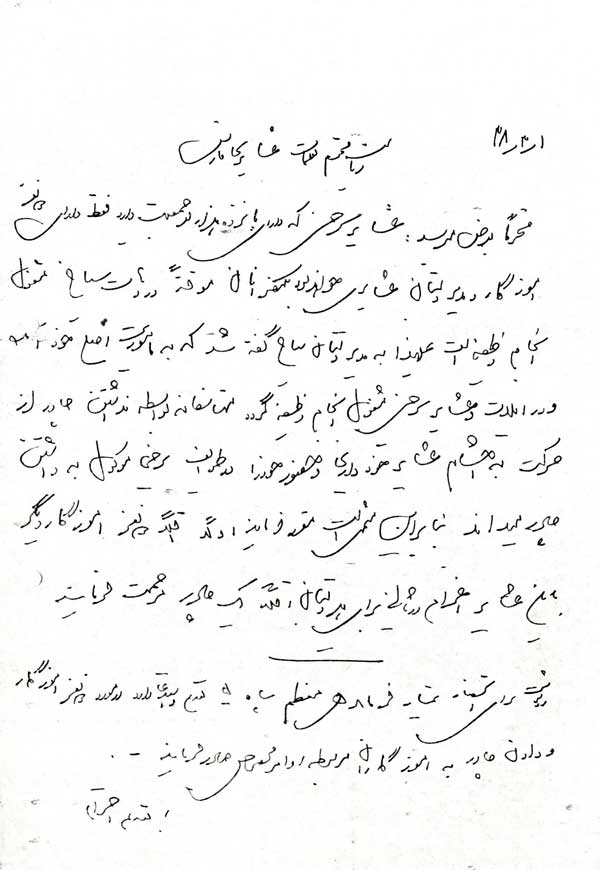 [5]، در نامهاي به مجله «ايرانشهر» (چاپ