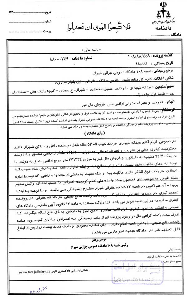 کل دادگستري استان فارس، و عدم توفيق، بناچار در وبلاگم درج