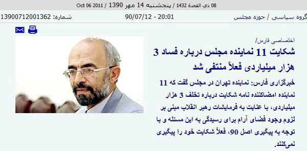 شده براي بازپسگيري شکايت يازده نماينده مجلس و منتسب کردن صريح آن به رهبري،
