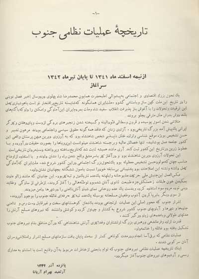 صفحه آغازين کتاب تاريخچه عمليات نظامي جنوب