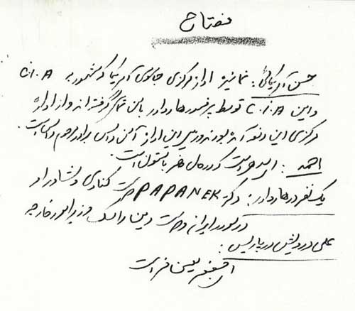 در نامه فوق اسامي مستعار به کار برده و