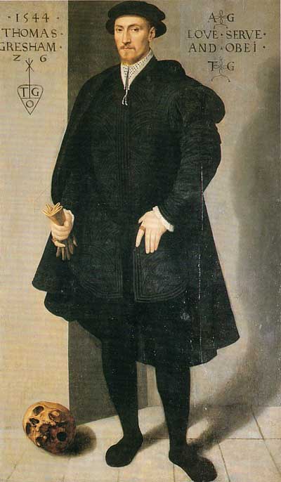 مؤيد گفتههاي پيشين ماست درباره پيوند سِر توماس گرشام، تاجر و صراف نامدار