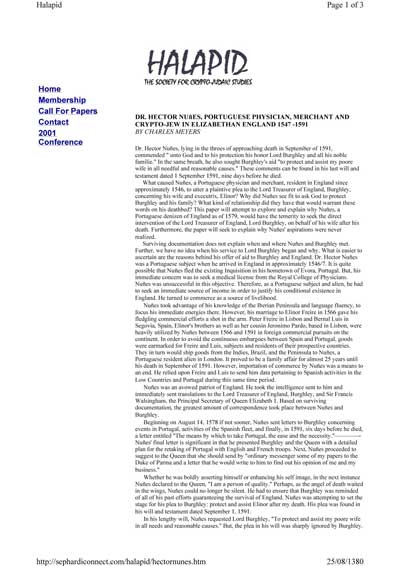دکتر هکتور نانز و شبکه يهوديان مخفي عصر اليزابت و ارتباطات آنان با لرد بورلي و
