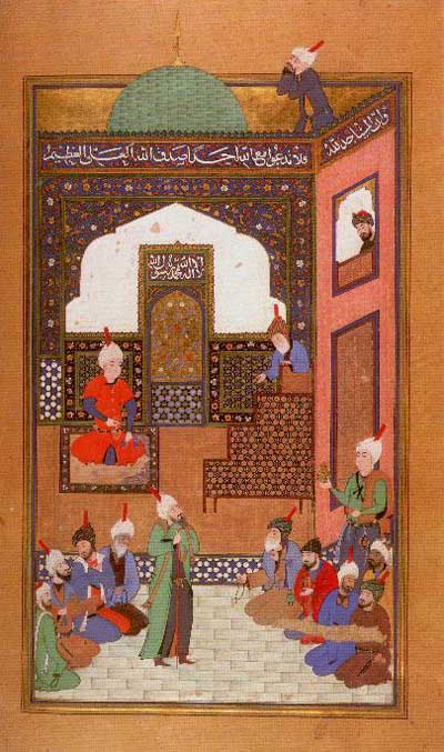 با احترام تمام، که موجب شادي او شد، در حالي که گروهي از رجال وي را مشايعت مي کردند، دربار را ترک کرد. ولي او مي افزايد: خدمتگزاري با سيني مملو از خاک دنبال وي بود و تا در دولتخانه شاهي هر جا که قدم مي گذاشت براي تطهير بر جاي پايش خاک مي ريخت.
