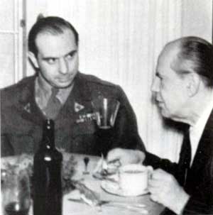 مايکل يسلسون، افسر واحد جنگ رواني سيا و گرداننده کنگره آزادي فرهنگي (در لباس نظامي)، به همراه يورگن فهلينگ کارگردان تئاتر.