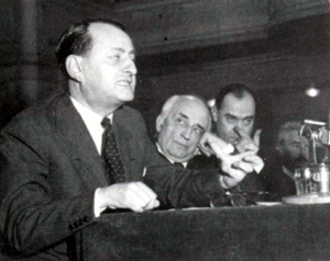 آندره مالرو در حال سخنراني در کنگره. مالرو گفت: «اکنون آمريکا جزيي از اروپاست.»