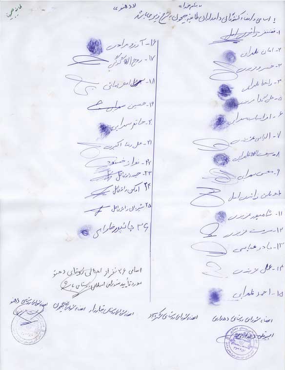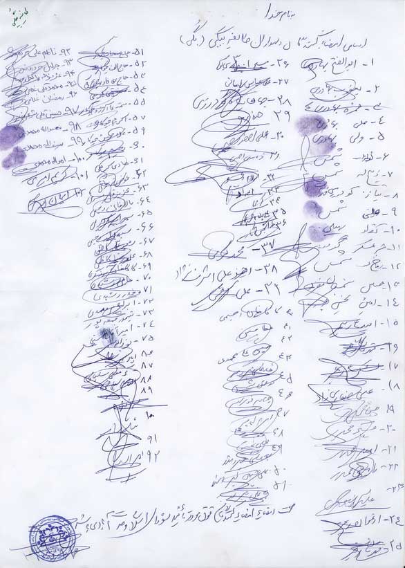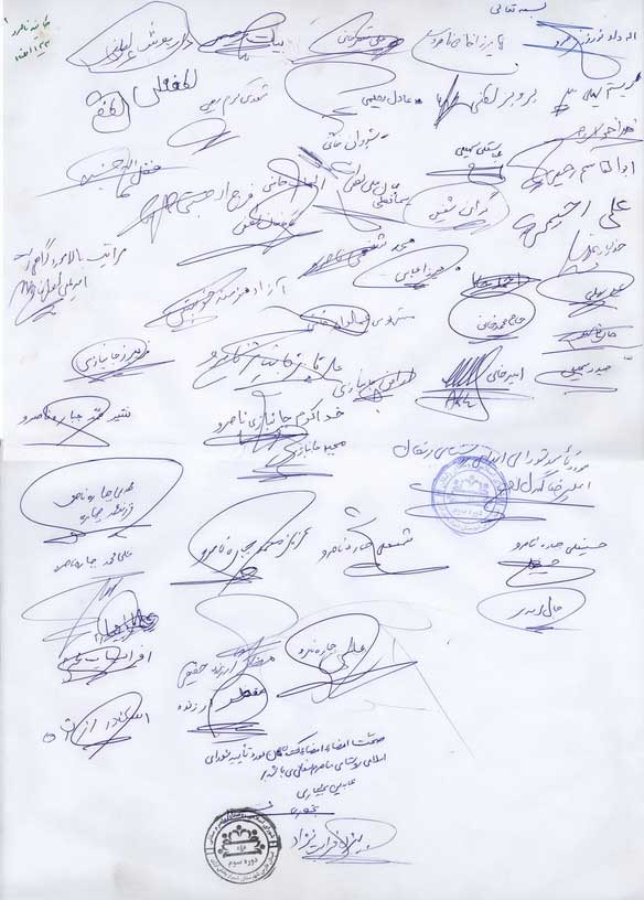 شهبازي و 906 امضاءکننده اوراق پيوست به نمايندگي از دو هزار