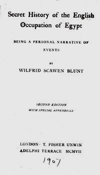 ويلفريد بلونت، ديپلمات و متفکر انگليسي، در کتاب تاريخ سرّي اشغال مصر