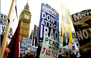 عليه سياستهاي تجاوزگرانه کانونهاي نظاميگراي ايالات متحده و بريتانيا نماد
