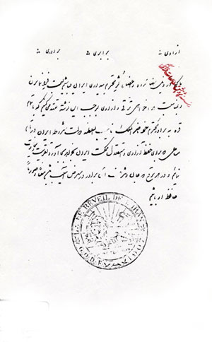 نگارش شهريار هوشمند، در 9 ربيعالاوّل 1329 سپهسالار تنکابني، رئيسالوزرا،