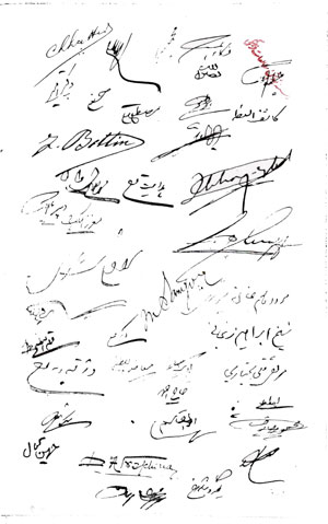 ششم، عهد ميکنيم که اين مجلس شوراي حاليه، که اصلاً لياقت ندارد و اکثر اعضا خائن و ظالماند، تغيير داده در جاي آن مجلس ملي جديدي که اعضاي آن از تمام ملت به آزادي بدون شيطنت انتخاب شوند تشکيل دهيم؛ به شرط اينکه انتخاب به حق و عدل جاري گردد.