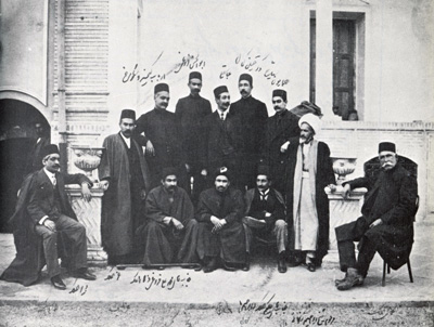 دبيرالملک. [نشسته در وسط از سمت راست عکس:] ابراهيم حکيمي