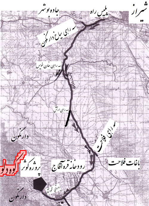 کيلومتري جنوب شيراز واقع است